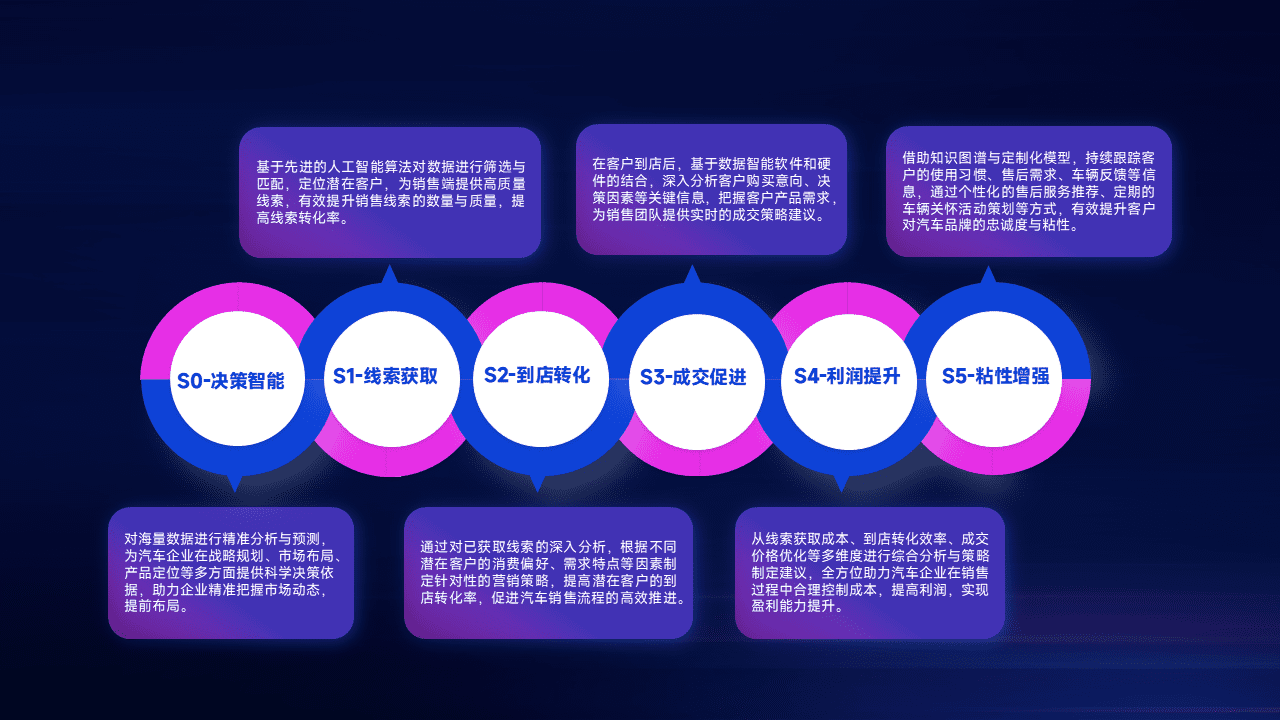 通过拓宽潜在客户来源、、优化线索分配并提高到店转化率,,以增强销售效率。。。同时,,,利用线索数据不断优化分析模型,,有效提升转化率,,扩大营销影响力。。